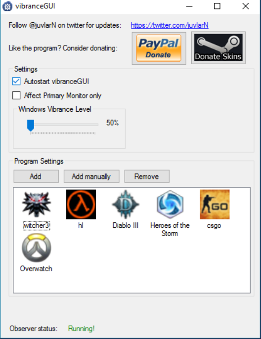 Automating NVIDIA Digital Vibrance and AMD Saturation settings for any game.